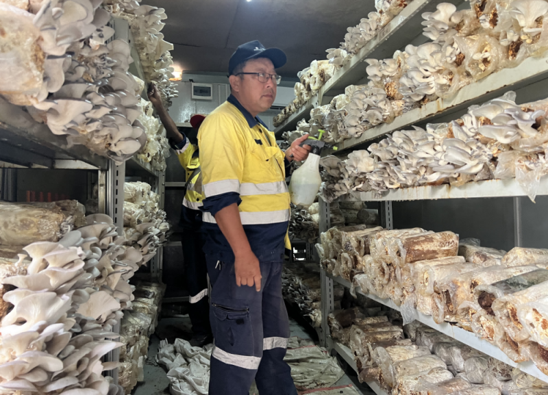 面对热带沿海高温炎热、强紫外线等不利环境,项目团队在中国援巴新菌草和旱稻技术中心的专业指导下,联合冶炼厂厂部完成废旧集装箱的改造升级。通过安装水雾喷射、换气等专业设施,构建起可控种植环境,将温度精准控制在18—22摄氏度,湿度维持在85%—90%,二氧化碳浓度维持在500-800 PPM,为蘑菇生长营造了适合的“小气候”。地方关系部员工带领巴方工人全程参与改造与种植,确保技术落地见效。