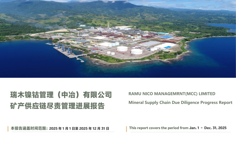 Recognising that risks of significant adverse impacts which may be associated with extracting, trading, and exporting minerals from high-risk or conflict impacting areas, and recognising that we have the responsibility to respect human rights, not to encourage conflicts and not to contribute to adverse impacts on society and environment, Ramu NiCo Management (MCC) Limited (hereinafter referred to as the “Company”) commits to adopt, widely disseminate and incorporate in contracts and/or agreements with suppliers the regulations in the Chinese Due Diligence Guidelines for Mineral Supply Chain (2rd Edition), and OECD Due Diligence Guidance for Responsible Supply Chains of Minerals from Conflict-Affected and High-Risk Areas, (3rd Edition), and respect human rights and not contribute to adverse impacts on society.