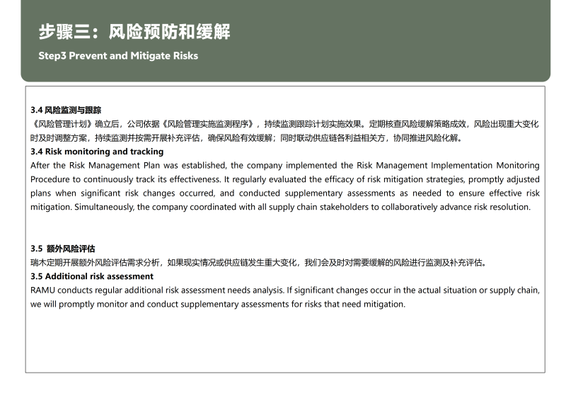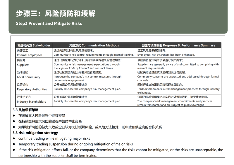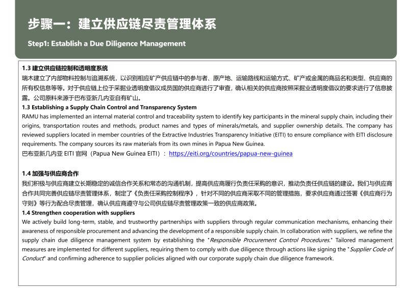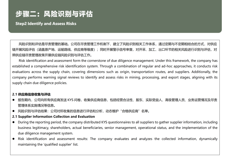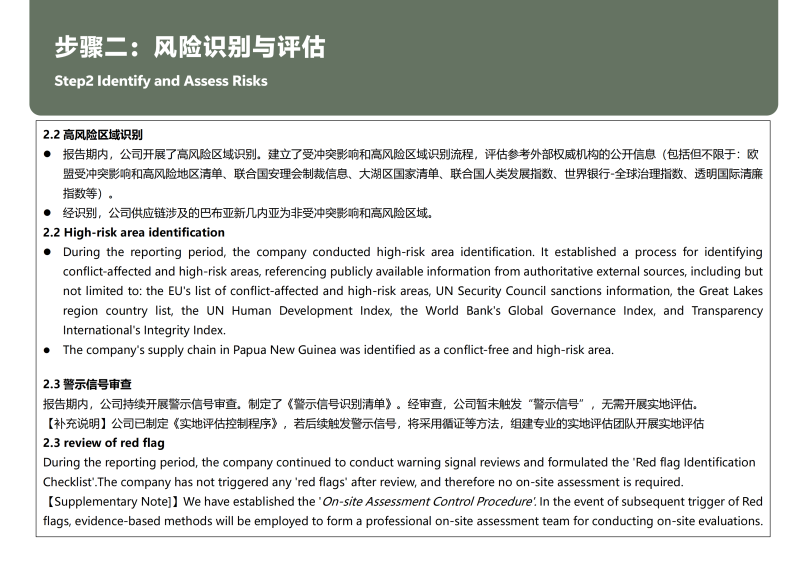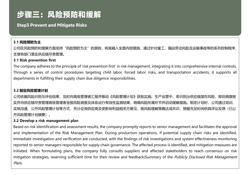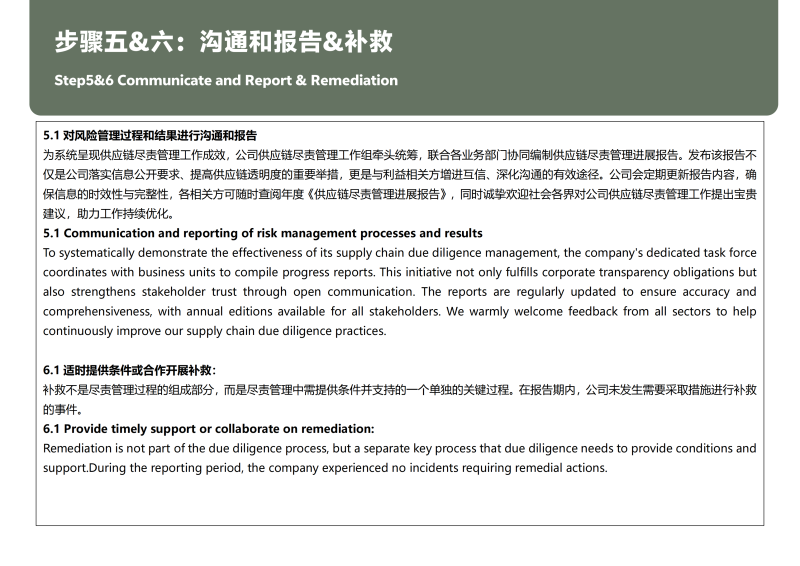 - 全程闭环:实施覆盖供应链全流程的持续尽职调查,形成“识别-评估-缓解-跟踪-报告”的闭环管理。